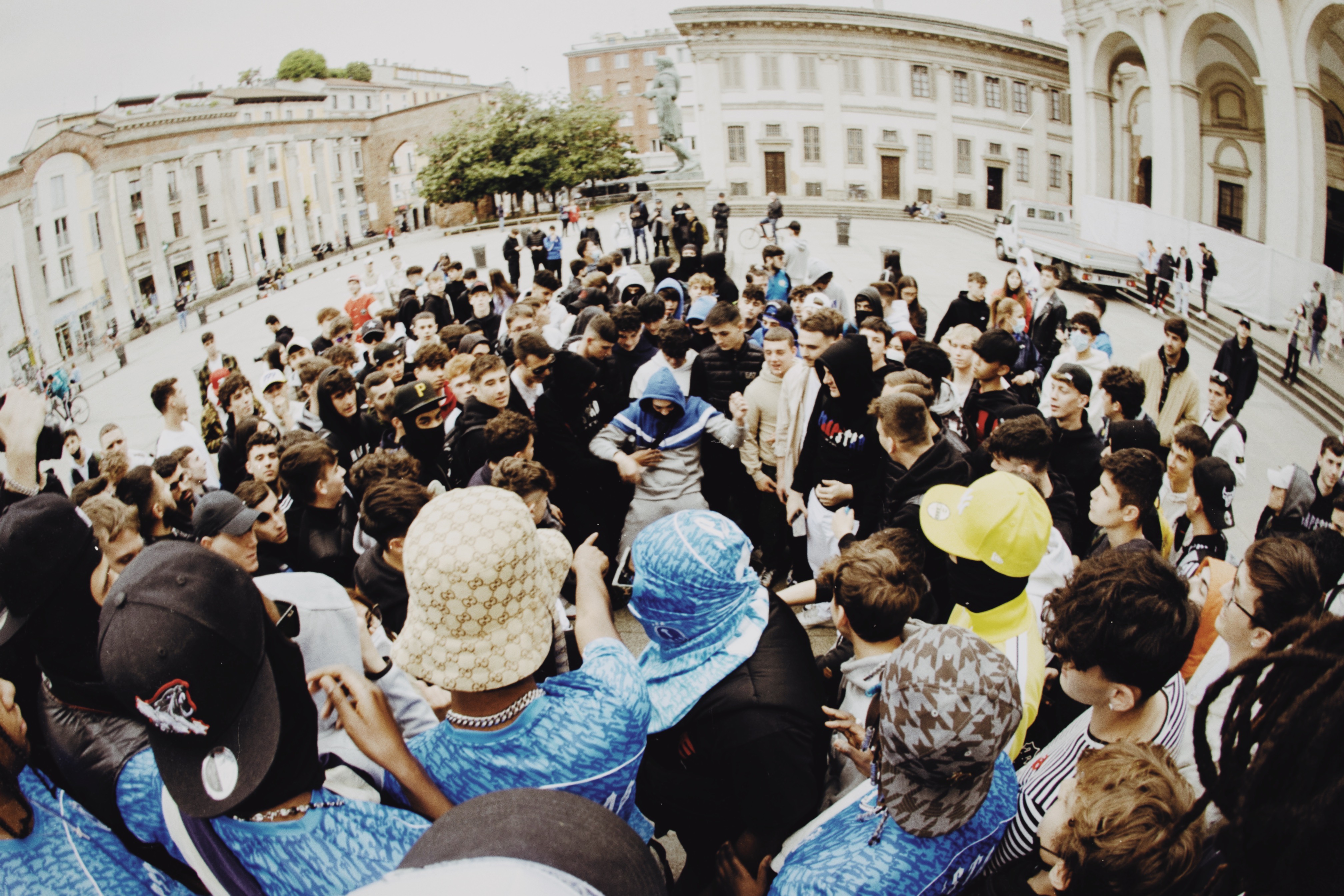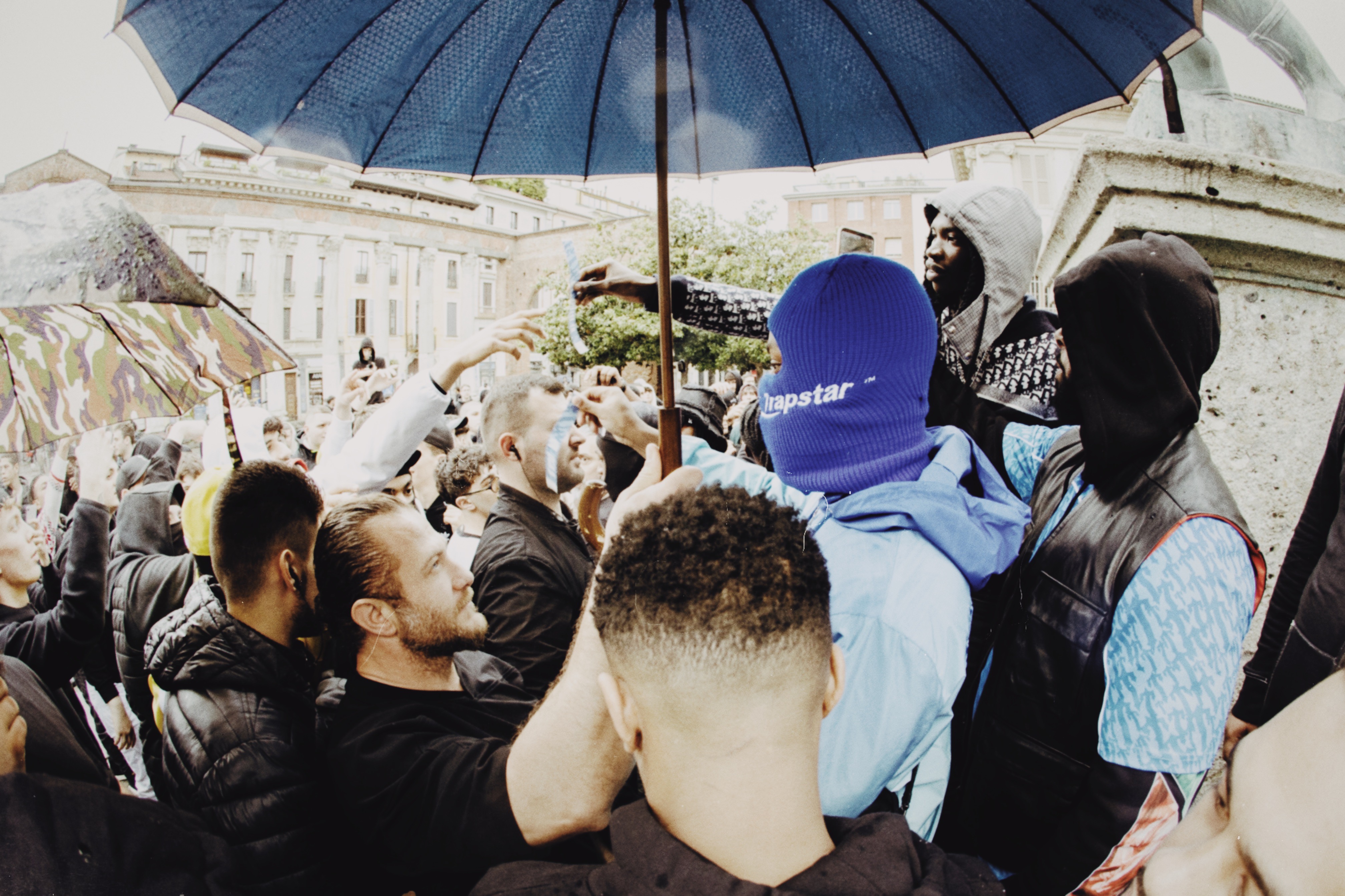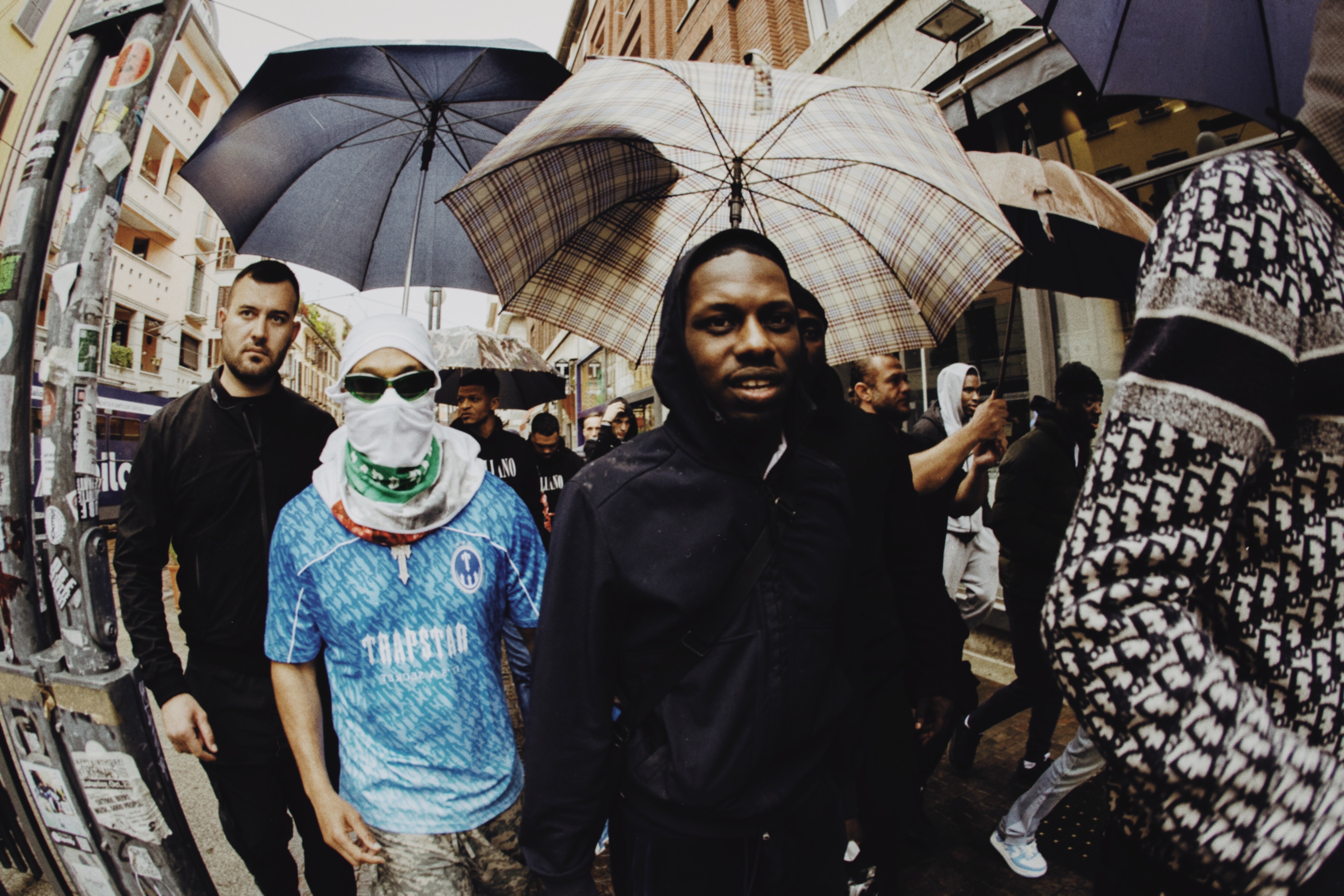 TRAPSTAR & friends of the brand including Lancey Foux, Blade Brown & Sfera Ebbasta immersed the store and an expected mob of customers with distinctive branding to transform the space into a realm of their very own. But first, came a communal link-up at a nearby location, to which fans of the brand, artist and movement can be handed wristbands to access the pop-up at Dropout Milano.